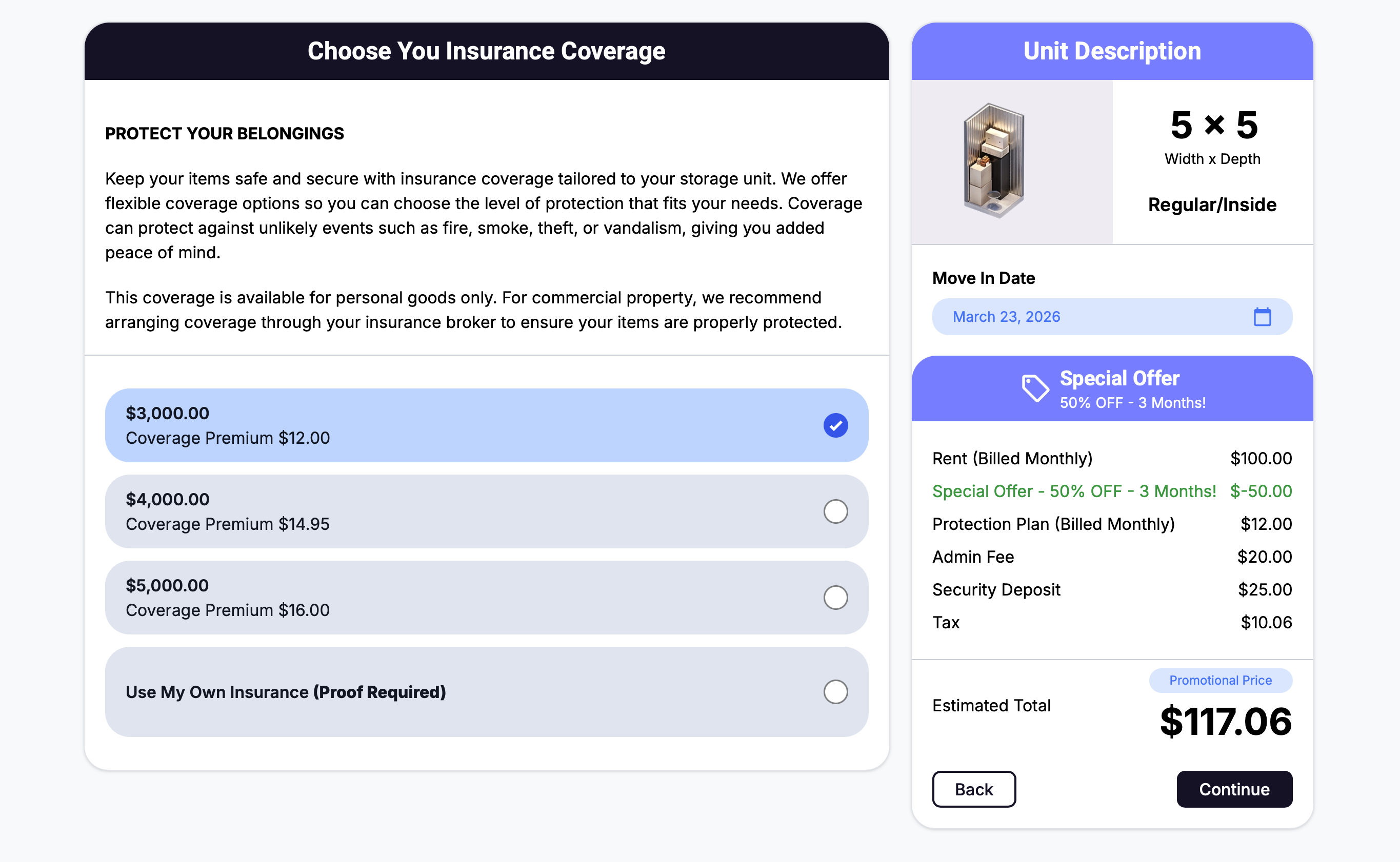You can now suggest a minimum insurance amount while still allowing customers to opt out. Custom wording can be applied to better align with your policies and messaging.